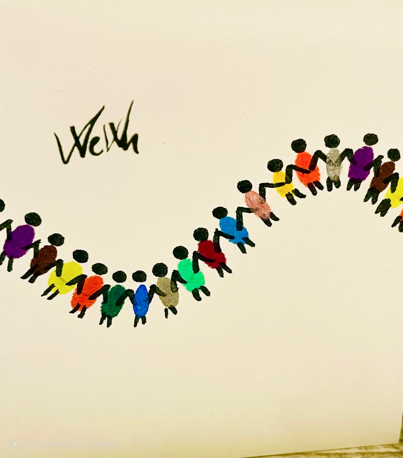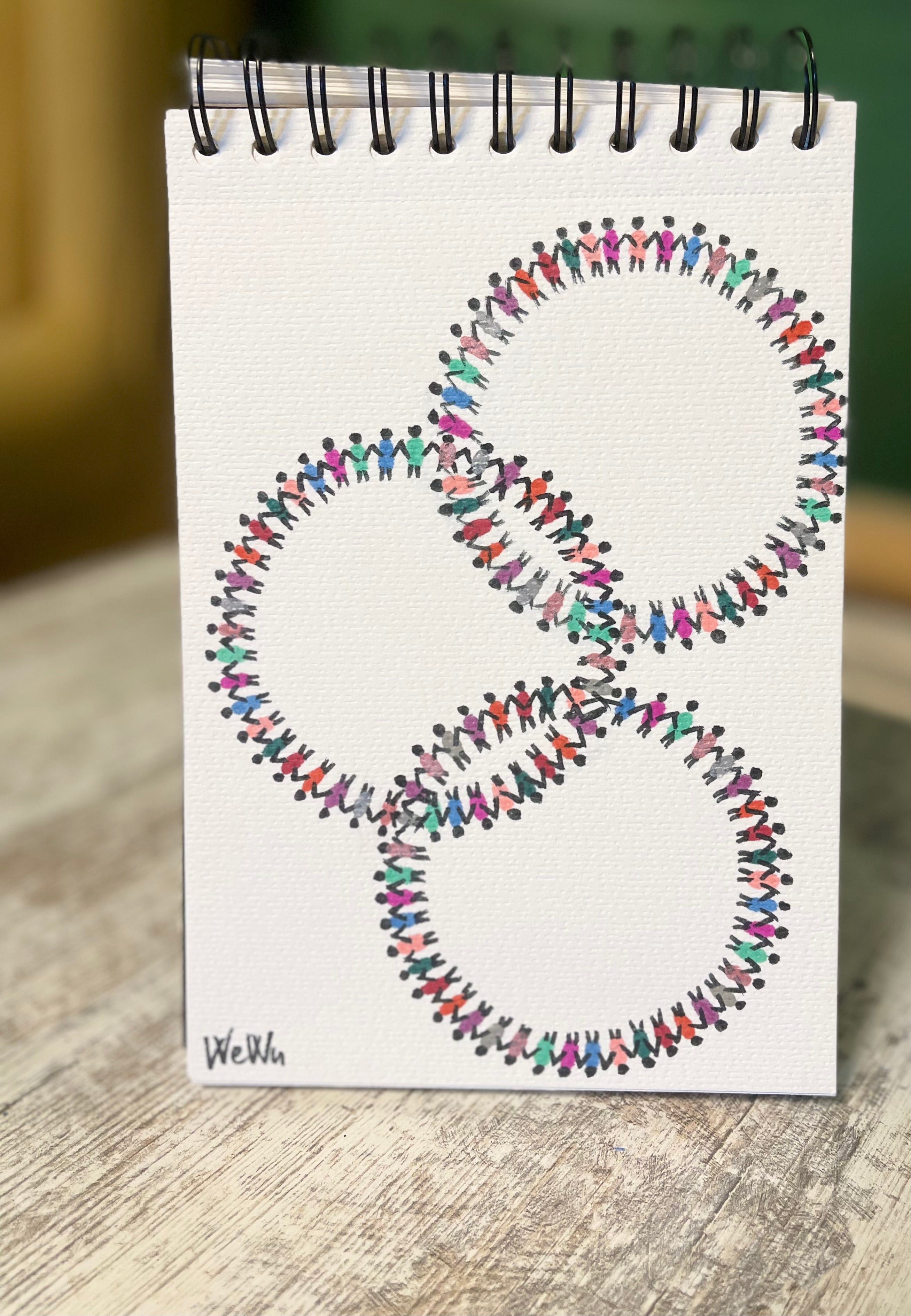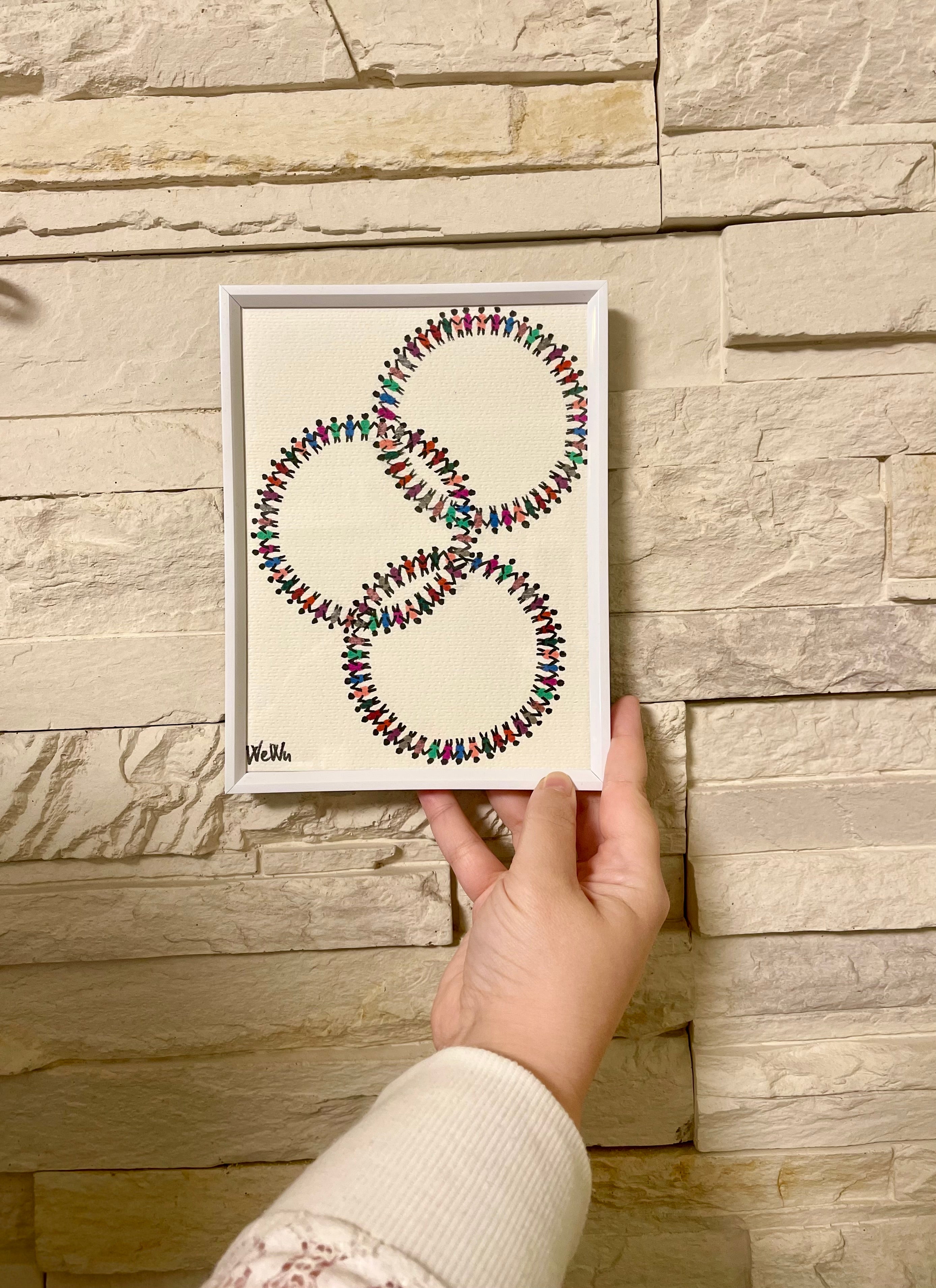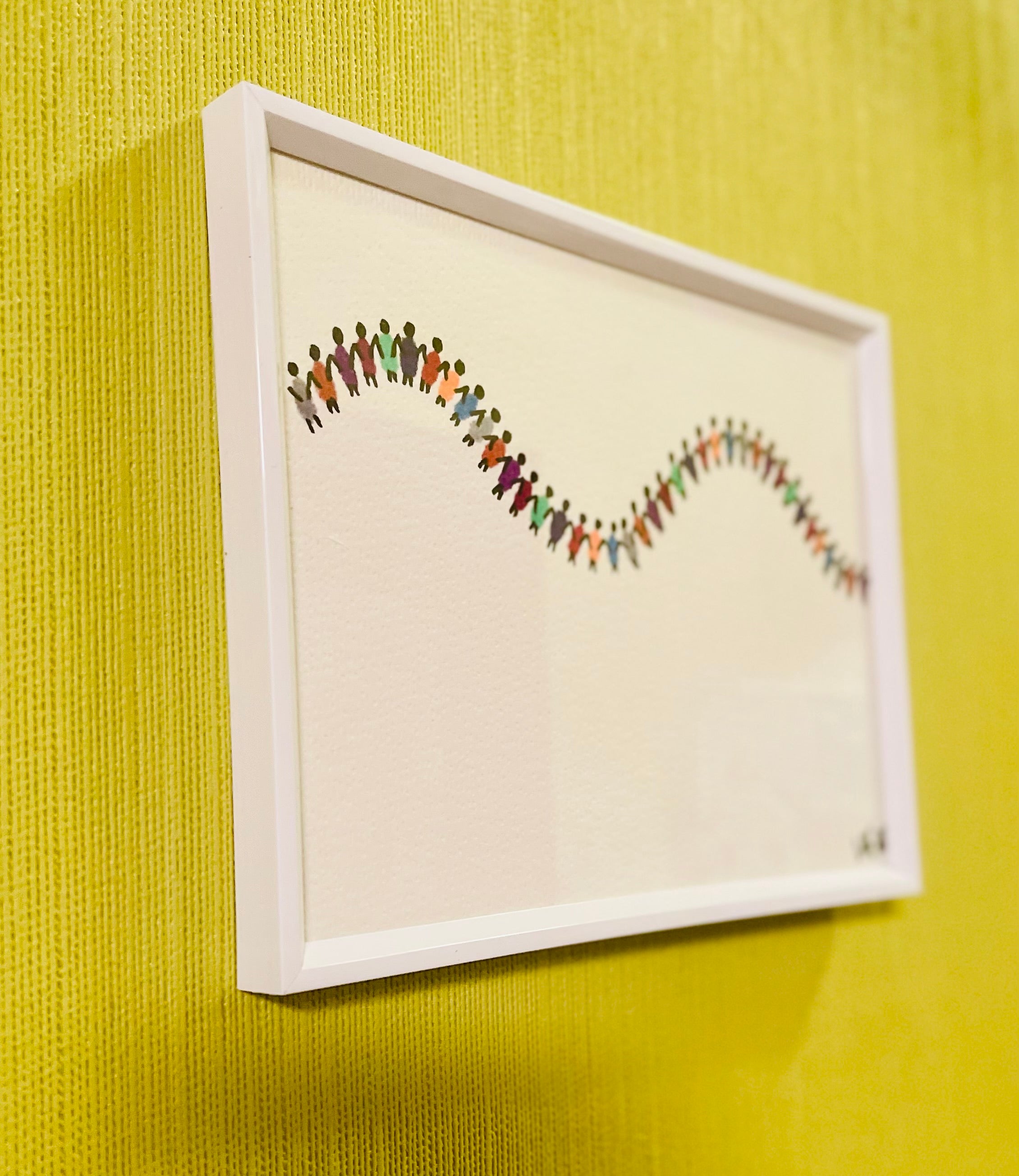 Shop allThis unique hand-drawn artwork symbolizes human connection and community. They are made up of tiny, colorful figures holding hands. The vibrant colors and playful shapes express diversity, unity, and harmony.